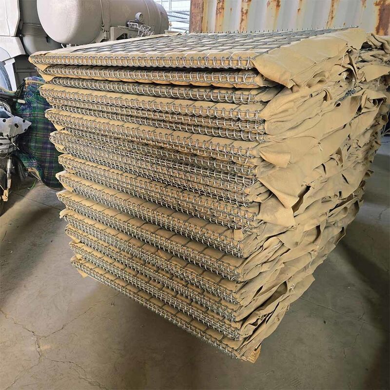 Hesco barrier is made of a collapsible wire mesh container with a heavy-duty fabric lining that can be filled with soil, sand or gravel and used as a barrier against explosions or light weapons. Its widely used in projects like troop fortress, flood control, and levee erosion prevention.